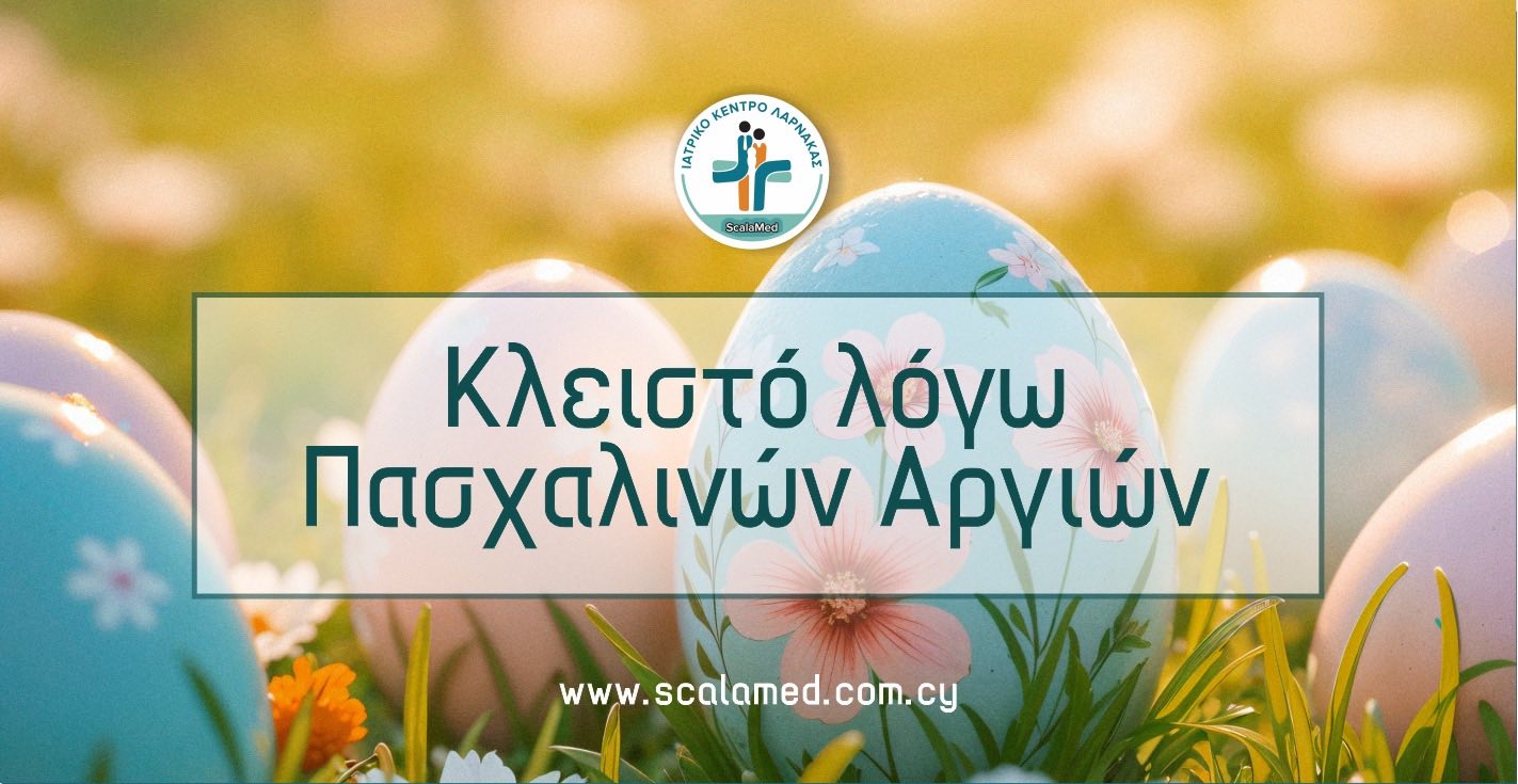 Το Ιατρικό Κέντρο Λάρνακας Scalamed θα παραμείνει κλειστό από την Μεγάλη Παρασκευή μέχρι και την Τρίτη του Πάσχα. Τα έκτ…